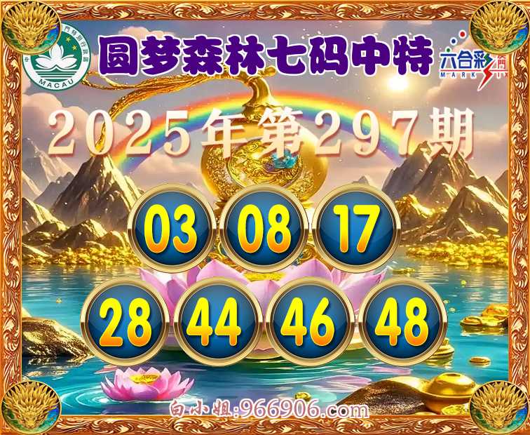 297期: 💄『圆梦森林』 💄七码中特💄【03.08.17.28.44.46.48】开:44准
