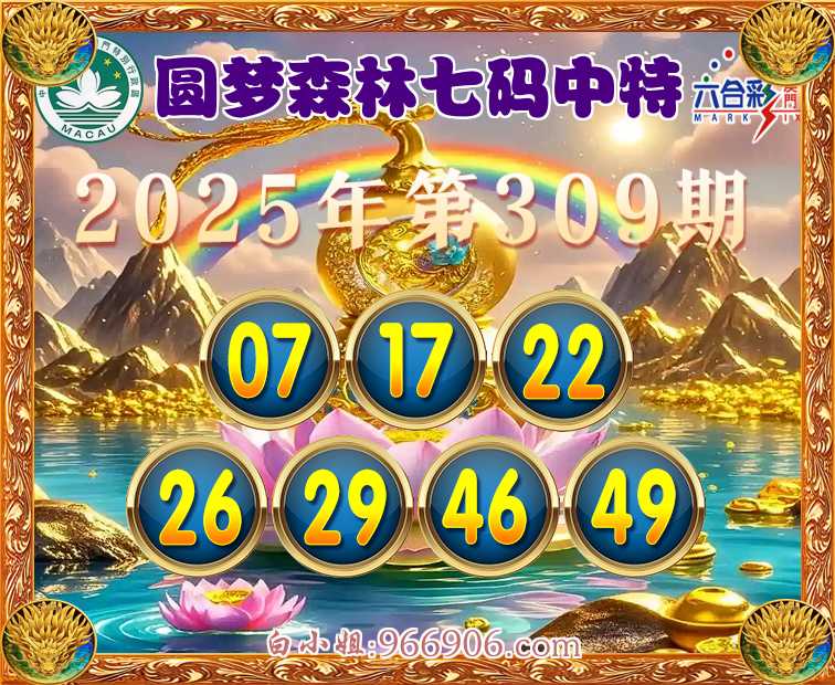 309期: 💄『圆梦森林』 💄七码中特💄【07.17.22.26.29.46.49】开:00准